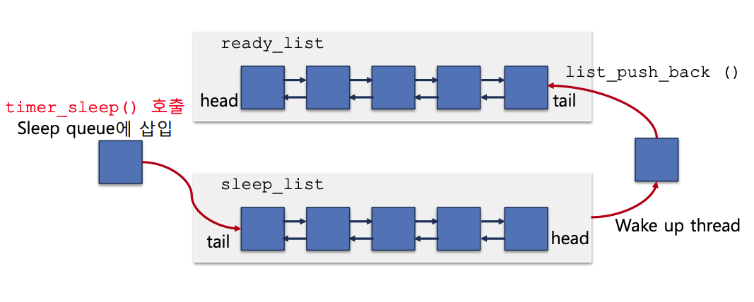 1. timer_sleep() 호출 시 thread를 ready_list에서 제거한 뒤 sleep_queue에 추가한다.