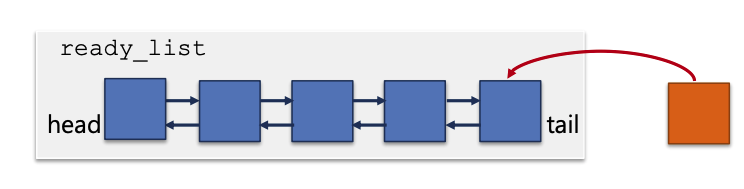 3. 그 다음, thread_yield() 내에서 do_schedule()을 호출해 현재 thread(주황색)의 상태를 ready로 변경하고 ready_list의 맨 앞(head)에 있는 애를 running 상태로 변경한다. 밑의 그림에서라면 head에 있는 가장 맨앞 블록이 running 블록이 된다.