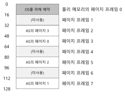 예시로 64바이트 주소 공간을 갖는 유저 프로세스가 128바이트짜리 물리 메모리에 접근한다고 해보자. 이때 하나의 페이지 크기는 16바이트이다.
