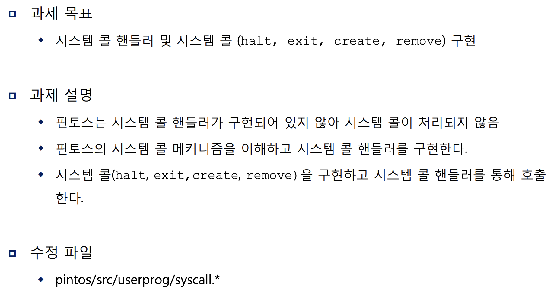 이 작업을 수행할 수 있도록 시스템 콜 핸들러를 구현하는 게 이번 과제의 목표이다. 이어서 Gitbook 설명을 확인한다.