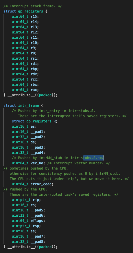 복잡해보이지만 간단하다. 그냥 인터럽트 프레임 구조체에 있던 값들을 레지스터에 옮기고 계산하는 작업이다.