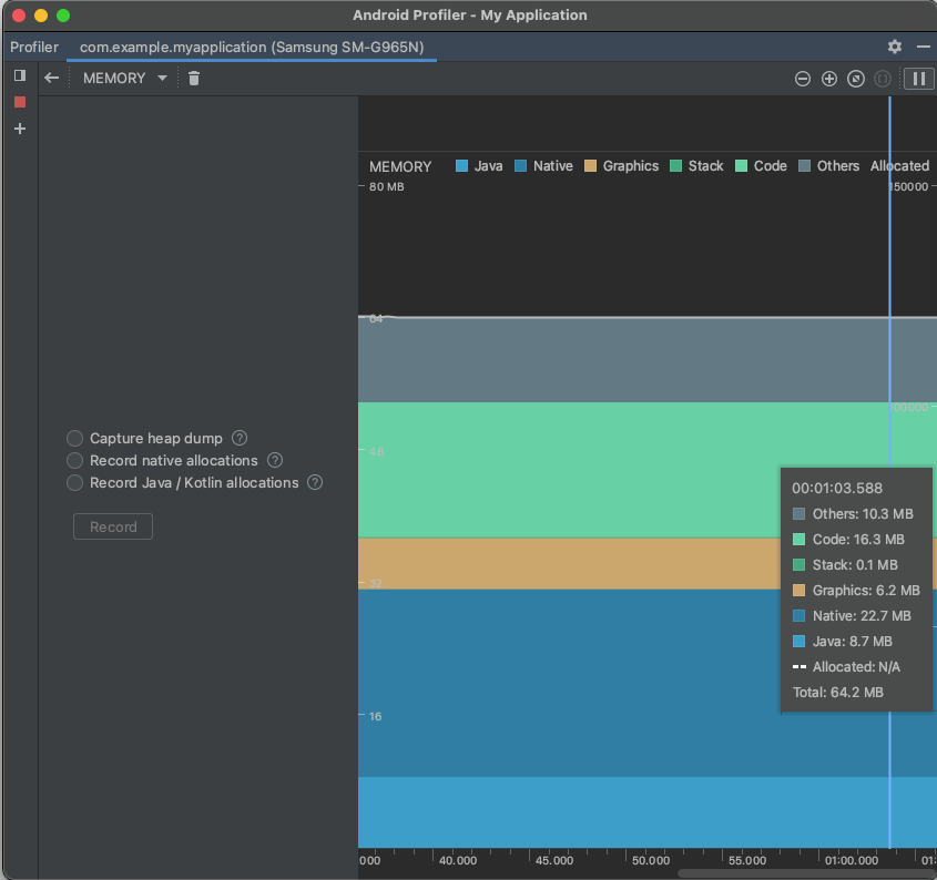 이 문제를 어떻게 접근하면 좋을지 다같이 고심했다. 그러던 중, Android Studio에서 제공하는 기능인 profiler를 은우형이 발견했다.
