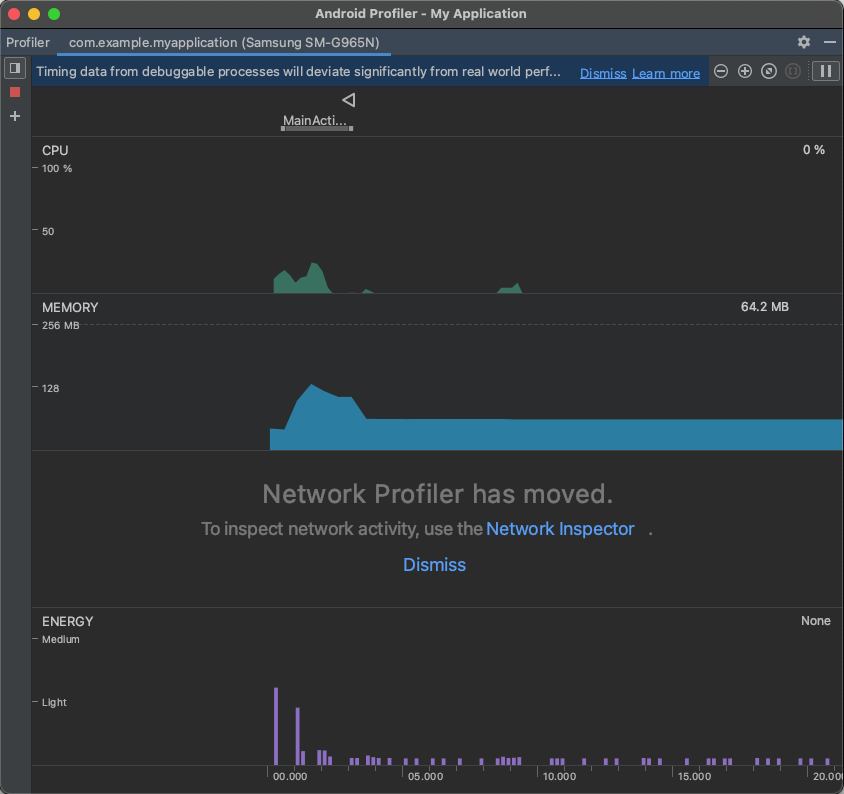 앱을 빌드하고서 실시간으로 CPU, 메모리, 에너지 소모 상태 등 다양한 지표를 진단할 수 있는 기능이었다. 이전부터 디버깅으로 확인하고 싶었던 네트워크 현황도 위에 포함된 Network Profiler 기능으로 확인이 가능했다. 그야말로 측정 및 분석을 위해 꼭 필요한 기능이다.