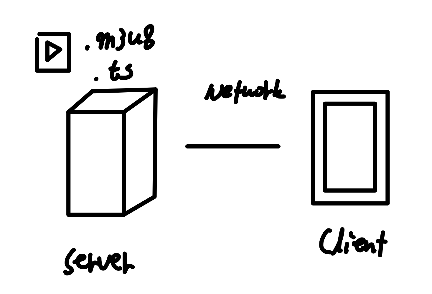현재 홈 화면에 나오는 영상은 더미로 넣은 6개의 영상으로, 서버(정확히는 서버리스로 S3 -> CloudFront -> Client이지만 이해를 돕기 위해 그냥 서버로 그림)에서 미리 인코딩해둔 m3u8과 ts파일을 HLS 프로토콜로 HTTP를 통해 클라이언트에 전송한다. 클라이언트는 서버로부터 받은 영상을 화면에 띄운다.