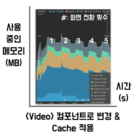아니나 다를까. 캐싱 적용 전후로 큰 차이는 없었다. 결론은 이전에 사용했던 컴포넌트인 NodePlayerView와 이번에 새로 변경한 컴포넌트인 React-Native-Video의 차이에 기인했다.