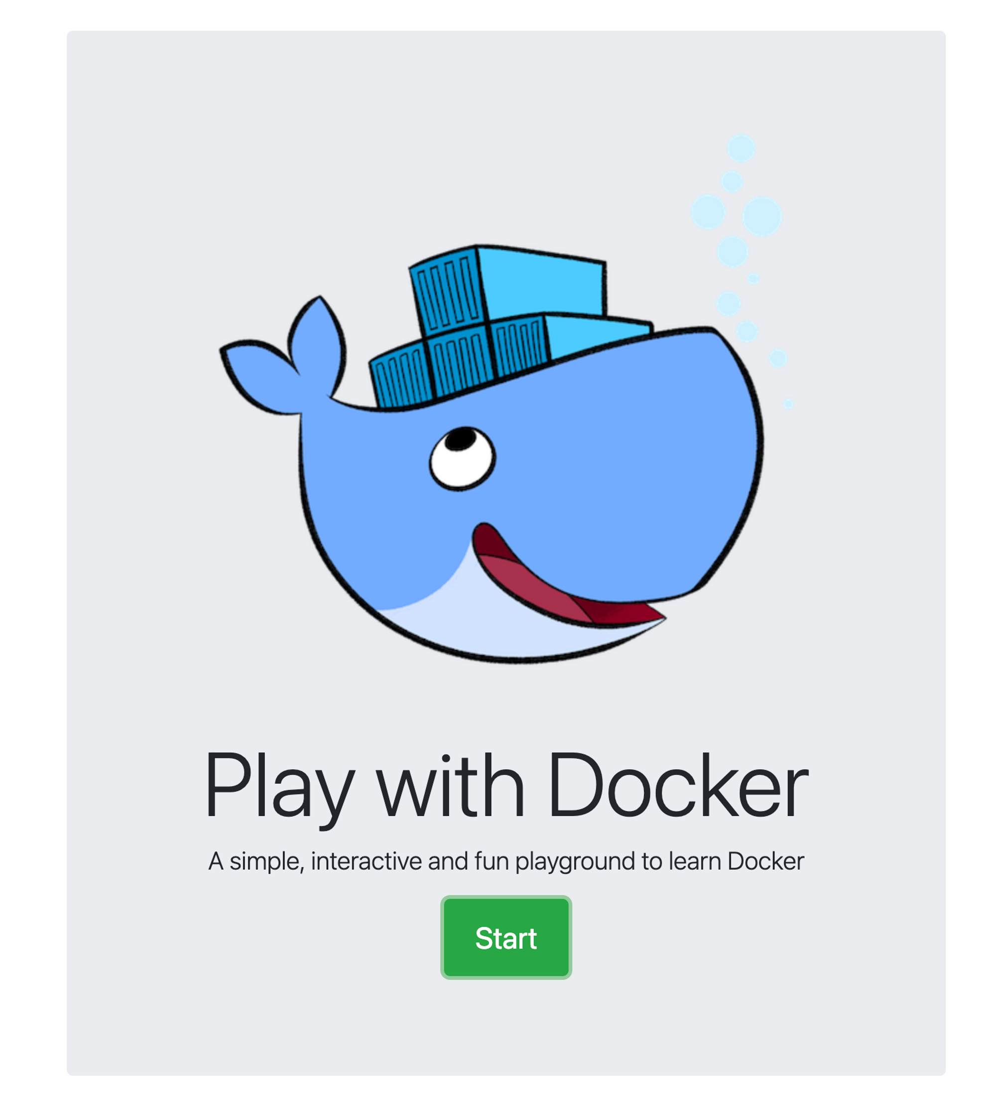 4. 도커 튜토리얼의 Play with Docker 설명에 있는 1번 URL 클릭한다. 화면 중앙에 [LOGIN]이 나오는데, 접속하면 [Start]로 뜬다.