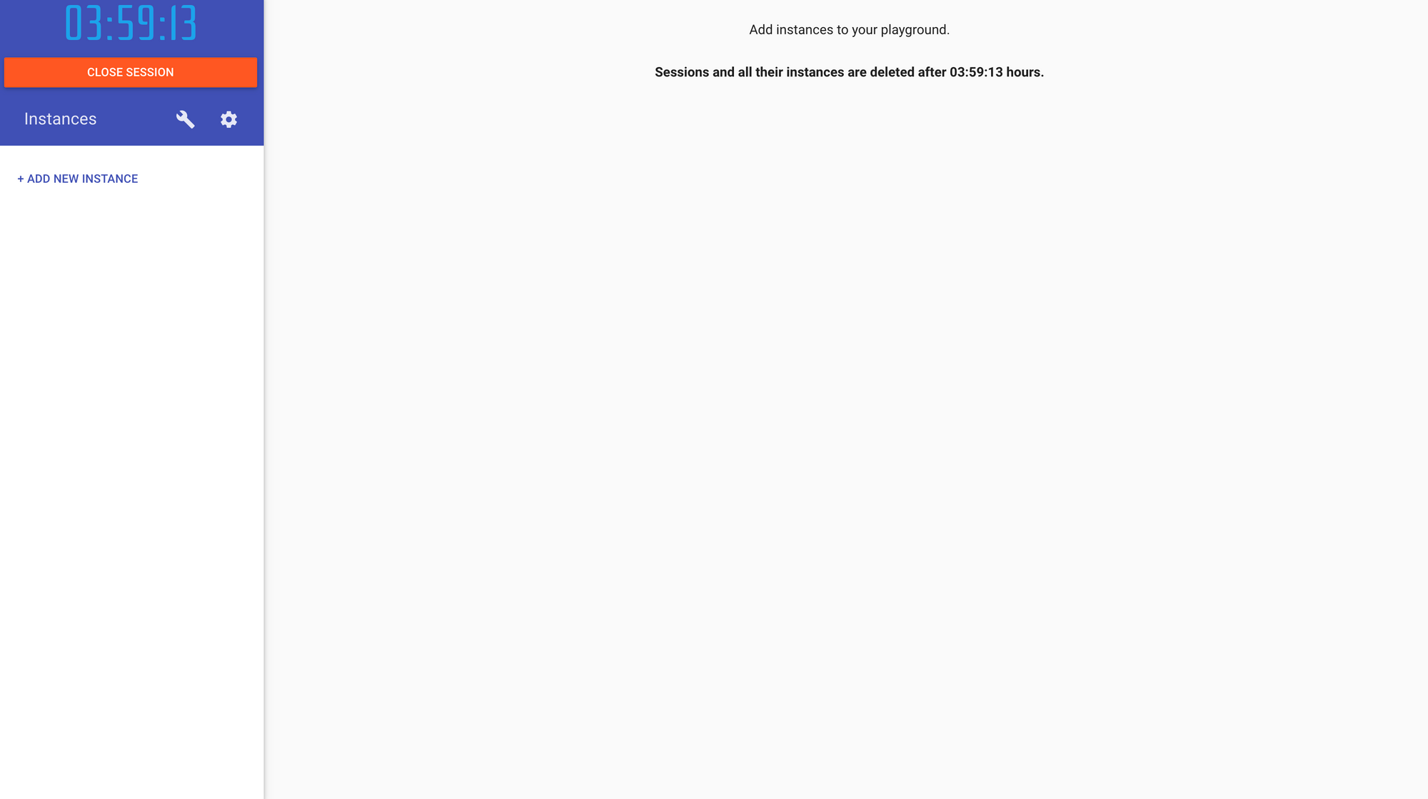 5. 사이트에 접속하면 playground에 [ADD NEW INSTANCE]를 이용해 가상의 도커 터미널이 제공된다. 세션당 연습할 수 있는 제한 시간은 4시간이다.