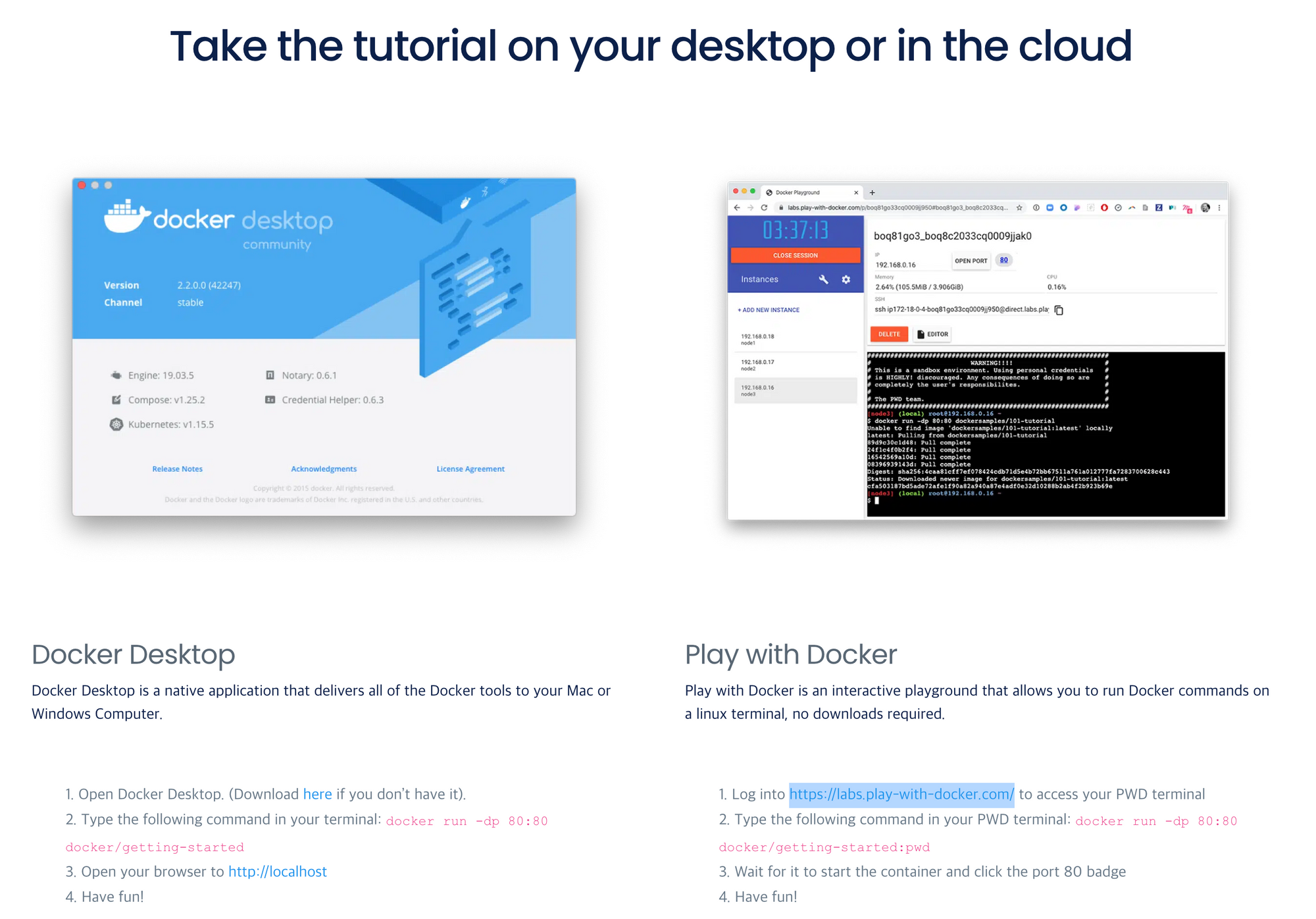 3. 도커 튜토리얼 사이트에 접속한다.