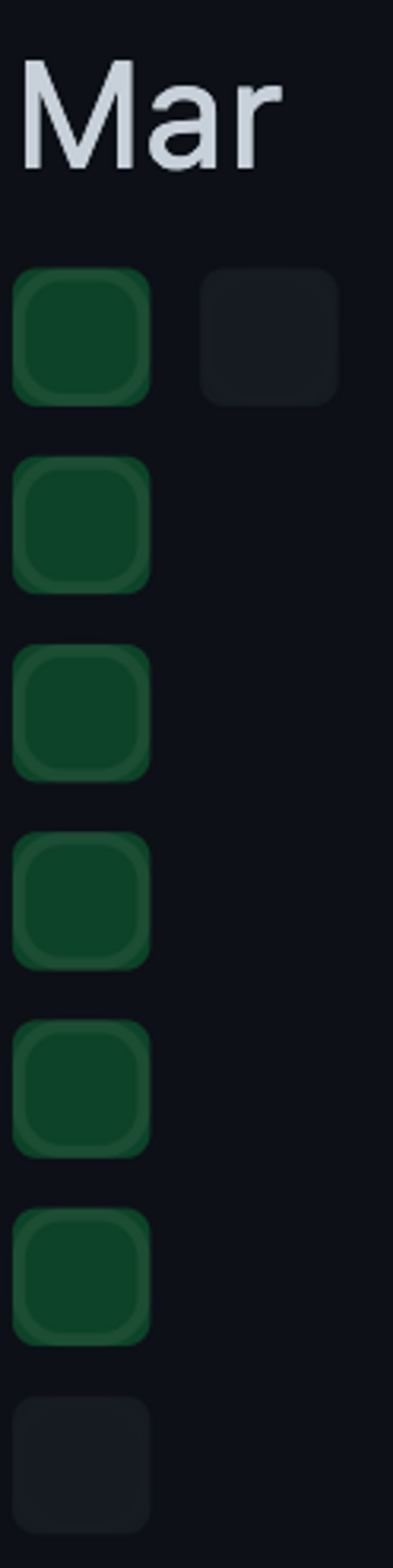 현재 운영 중인 개발자 자기계발 커뮤니티 올루틴 덕분에 1일 1커밋을 재개했다. 결과는 아래 이미지와 같이 성공적!(주말은 쉬어가기로 했다 ㅎ..) 역시 사람은 환경설정의 동물이다. 앞으로도 목표를 이루려면 의지 따윈 믿지 않고 철저하게 내가 하게끔 만드는 환경을 구성할 것.