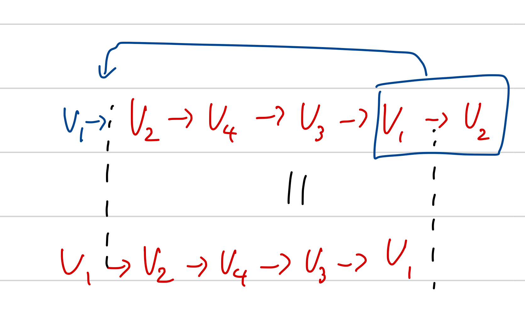 이 문제를 풀기 앞서, 우리가 명심해야 할 개념이 하나 있다. 바로 순환 문제(처음에 출발했던 도시로 다시 돌아오는 경우)라면 첫 시작 도시를 고정해도 된다는 점이다. 위의 영상을 볼 때도 이 개념을 이해해야 왜 V1에서 출발하는 걸 고정으로 하는지를 이해할 수 있다.