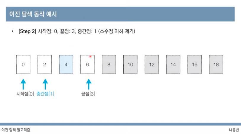 def binary_search(array, target, start, end): # 주의! start, end는 모두 인덱스를 뜻함/